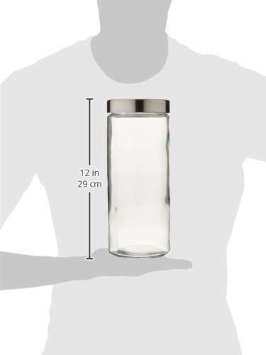 - Cylinder glass canisters with brushed aluminum screw top lids
