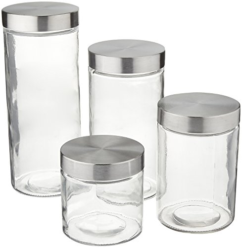 Anchor Hocking Callista 4 Piece Glass Canister Set with Stainless Steel Lids
