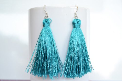 Blue Artificial Silk Silver Earring Handmade by Flower GemStone