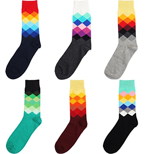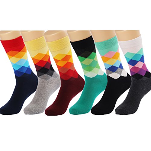-. Feature : HSELL® STOP BEING BORING!!!BRIGHTEN UP YOUR DAY!!! They will allow you to be colorful, young, and fun underneath the dull grey suit you are forced to wear to your adult job. / HSELL® ARGYLE BRIGHT AND COLORFUL: Design unique colors and Argyle patterns,look cool and vibrant.People will enjoy asking about your socks! Whenever You wear these you always get compliments. / HSELL® EACH WITH A UNIQUE DESIGN: Great Value Pack of 6 pairs, each with a unique design, Comfortable Soft Stretch Cotton. Fit Shoe Size: Mens 6-11, Womens 7-12. / HSELL® AWESOME GENDER NEURAL DESIGN: They are perfectly bright with an awesome gender neural design and just thick enough. / HSELL® PERFECT GIFT: These Would be Perfect for boyfriend as a gift.Very colorful and comfy. Or given as a christmas present and they were very well accepted.