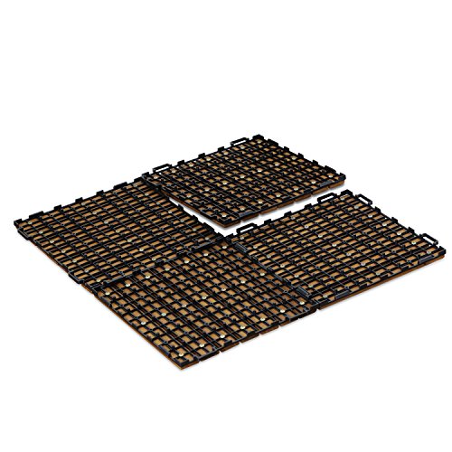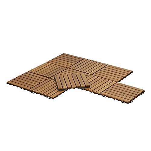 FURINNO FG161033 Tioman Outdoor Floor Wood Tile Interlock 10 Piece/CTN, Honey Oak Color Doormats
