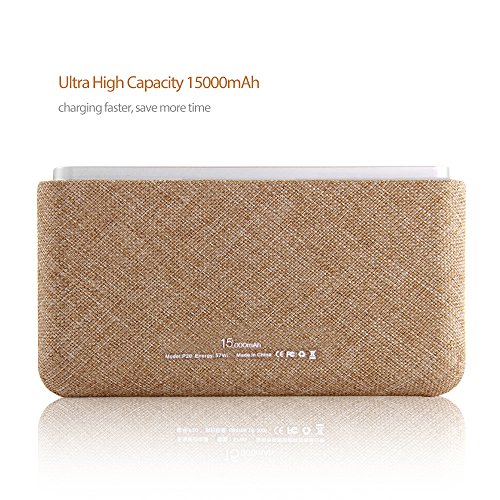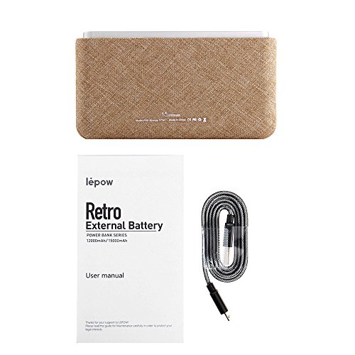 -. Title : Lepow 15000mAh Compact Portable Charger Unique Cotton Linen Natural Design High-Capacity External Battery Power Bank with Shakable Battery Level Display, Smart Charging Technology