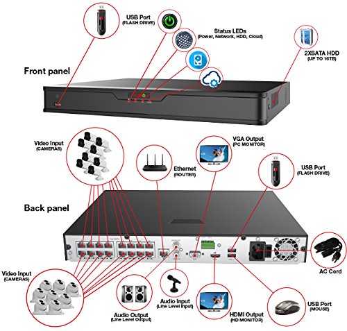Revo America Ultra 16CH 4K H.265 NVR, 3 TB Surveillance Grade HDD, Remote Access, with 6x IR Bullet & 2x IR Turret Cameras, 4 Megapixel, Indoor/Outdoor, True WDR.