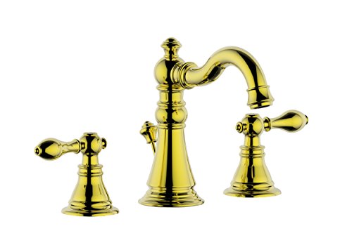 -. Title : Derengge F-8303-PB Gold Finish 8" Widespread Two-Handle Bathroom Faucet with Brass Pop up Drain Assembly,cUPC NSF AB1953 Lead Free Polished Brass