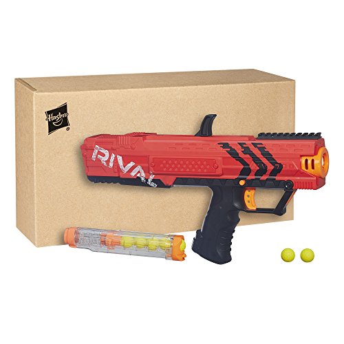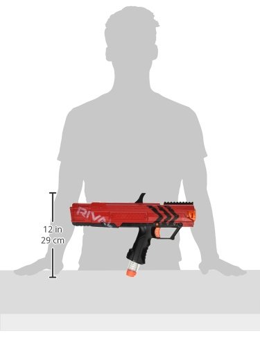 Experience intense head-to-head competition with the ultimate precision and power of the Nerf Rival Zeus MXV-1200 blaster! Choose a blaster color and go into battle as the Red Team or the Blue Team. The Zeus MXV-1200 motorized blaster fires at a velocity up to 100 fps (30 mps). It comes with an easy-load magazine and 12 high-impact rounds. The blaster has a trigger lock, tactical rails, and ambidextrous magazine release. Experience the intensity of Nerf Rival with the Zeus MXV-1200 blaster! Nerf and all related properties are trademarks of Hasbro.Feature