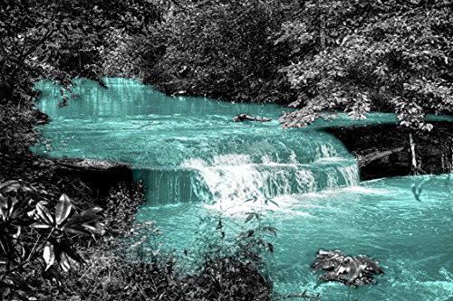 Small Falls - Gray Background with 3 Decor Colors - Ocean, Seascape, Home Decor. Wall Art Canvas wrapped around a wooden frame, Family Room, Living Room. Bedroom ) (Aqua, 20x30)