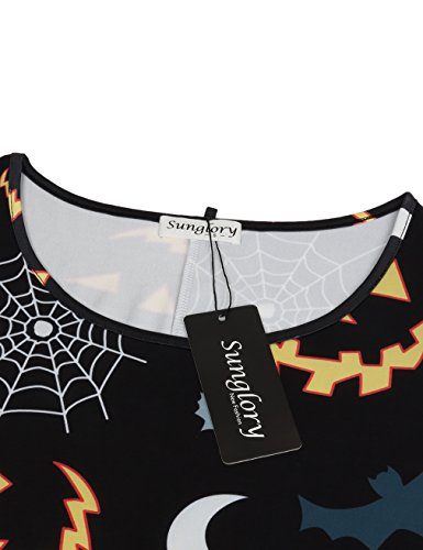 Swing Dress,SUNGLORY Women's Halloween Prints Junior Fit and Flare Cocktail Dress Black Bats M