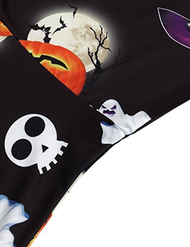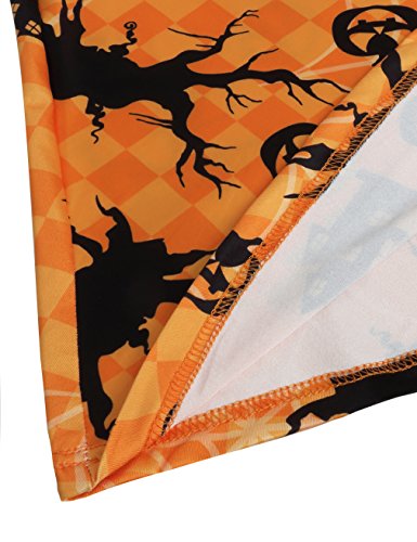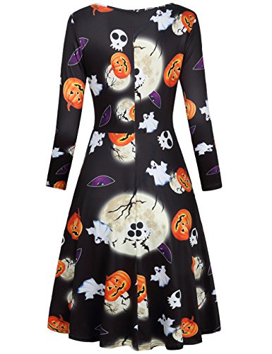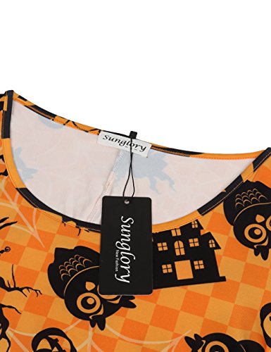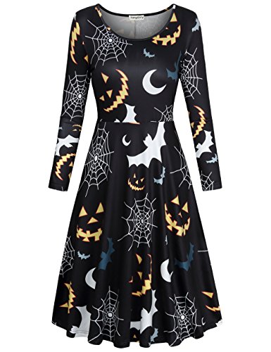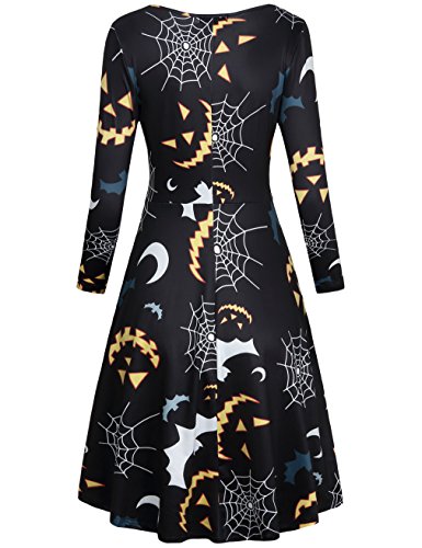 SUNGLORY Women's Halloween Costume Pumpkin Owl Print Dress Fancy Party Dress (Large, Black Moon)
