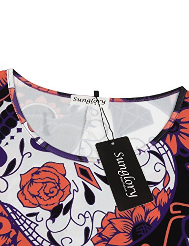 Tshirt Dress,SUNGLORY Women's Halloween Costume Purpel Skull Print Dress Fancy Party Dress Purple Skull L