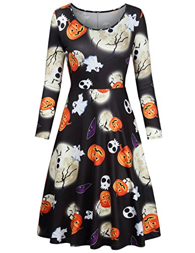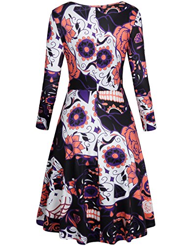 Flare Dress,SUNGLORY Women's Long Sleeves Casual A-line Halloween Costume Pumpkin Dress Purple Skull M