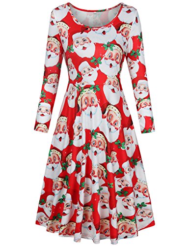 SUNGLORY Women's Christmas Santa Claus Party Dress Casual Long Sleeve Round Neck Tunic Dress