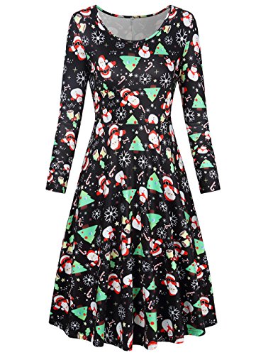 SUNGLORY Christmas Black Dress, Women's Christmas Santa Claus Party Casual Dress