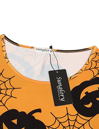 Midi Dress,SUNGLORY Women's Yellow Pumpkin Spider Smock Flare Homecoming Dress Yellow Pumpkins XL