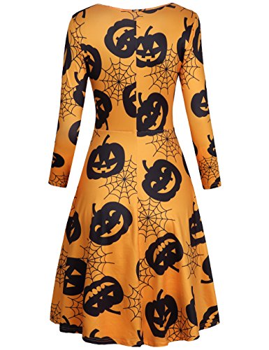 Fall Dress,SUNGLORY Women's Casual Orange Pumpkin Printed Halloween Midi Dress Yellow Pumpkins L