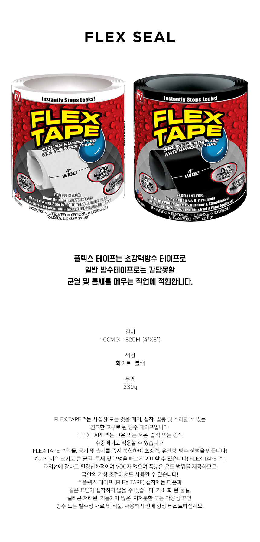 플렉스 테이프Flex Tape /초강력 방수 테이프 색상 -블랙/화이트