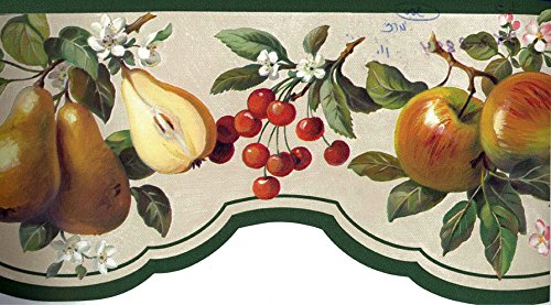 -. Title : Green Peach Apples Wallpaper Border 2884 BKB