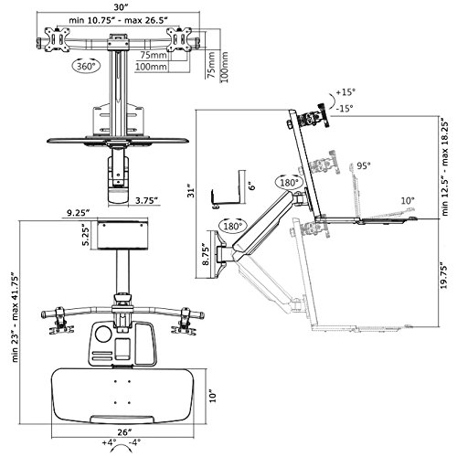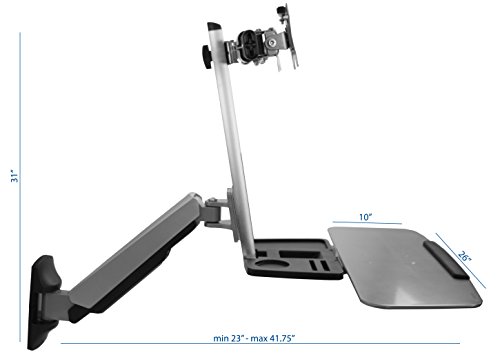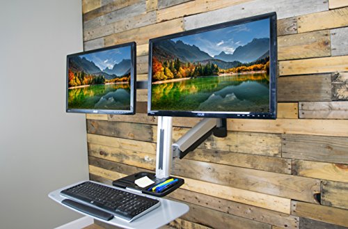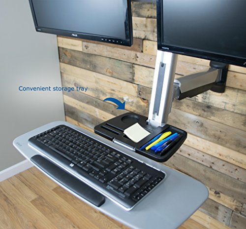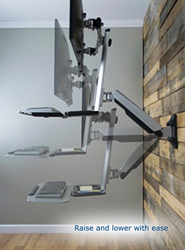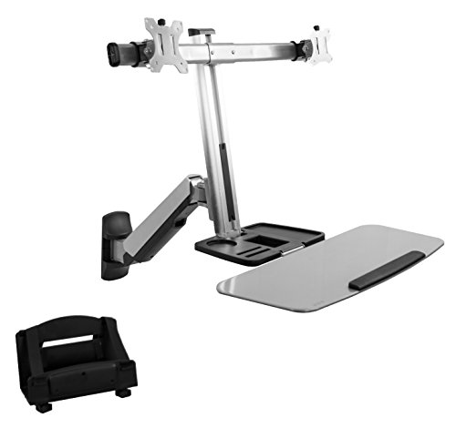 VIVO Dual Monitor & Keyboard Counterbalance Sit-Stand Wall Mount | Standing Transition Workstation with PC Holder (STAND-SIT2W)