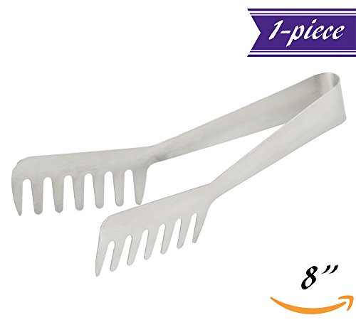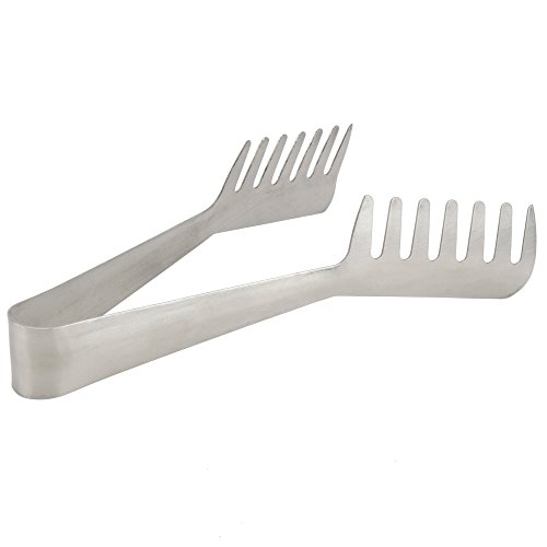 Product Description Pasta preparation doesn't have to be difficult thanks to this spaghetti tong. Easy to use and built to last, it's perfect to use when serving or preparing any type of pasta, from angel hair to linguine. Whether used in the kitchen or placed at a self-serve buffet, this tool is the ideal way to maneuver slippery noodles and other hard-to-grasp foods. Perfect for Pasta With this item, your staff will be able to easily remove pasta from boiling water without the hassle of straining. This not only streamlines the process of preparing pasta, but it also protects your staff from being burnt by scalding water while straining noodles. Durable Construction Designed with 18/0 stainless steel, this tong is a hefty utensil that is sure to last. As a result, it won't warp or bend with time, even when using it to fish pasta out of boiling water. Comfortable Handling For your convenience, the utensil is designed to be easy to maneuver. Thanks to its 8" length, the tong affords the user a secure grasp and plenty of the leverage needed when handling hot foods. Great Versatility Even if pasta isn't your most popular menu item, you're still sure to get plenty of use out of this tong! Thanks to its design, it makes grabbing other food products, from ice cubes to salad greens, quick and easy. These Spaghetti tongs are a nice alternative to the traditional pasta forks. They are much easier to use and customers have better control over the amount they "grab". The Stainless material makes for an extremely durable product. 0
