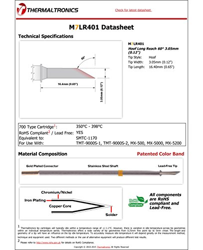 Thermaltronics M7LR401 Hoof Long Reach 60deg 3.05mm (0.12") interchangeable for Metcal SMTC-1170