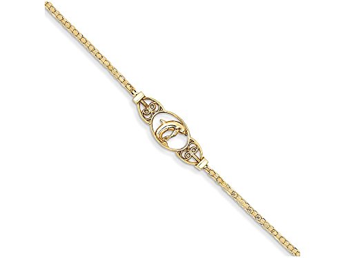 The dazzling 10 Inch 14k Polished Dolphin Anklet, crafted in 14 kt Yellow Gold . This design measures 8.00 mm wide, 10.00 Inches long. GIFT CARD OPTION WILL NOT BE AVAILABLE FOR THIS ITEM!