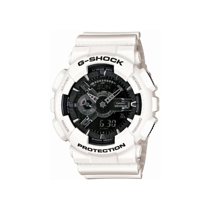 The set includes: body, box, instruction manual, warranty card is the instruction manual that came for everyday life waterproof: 20BAR b [Product Specifications] / b br ● Size (H × W × D): 55 × 51.2 × 16.9mm br ● weight: 72g br ● LED: the pursuit of amber br b [Product details] / b br br toughness, from evolving G-SHOCK, New color series "White and black Series (White & black Series)" appeared. br The base model, rugged toughness design is to line up the popularity of analog big case, adopt a vivid white to its powerful modeling. br sneakers and casual accessories, also incorporated, such as in industrial products, the monotone and high contrast that is also to design trends, was represented by a white and black shiny. br In addition, the accent indexes or hour and minute hands of metallic silver, and finished with a cool design. br whole body gives off a brilliant shine, is the emergence of New color models shine in street casual scene. br br-Bezel Case Material: Resin br-resin band br-Shock structure (resist shock) br-inorganic glass br-antimagnetic watch (JIS1 species) br-20 water pressure br-world time: 48 cities (29 time zone, daylight saving time setting function) + UTC (time display, home time of the city features replacement br · stopwatch (1/1000 seconds Coordinated Universal time), a total of 100 hours, the speed measurement function (MAX1998unit / h, 2unit / h units), Rap / split measurement switching) ...