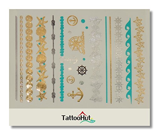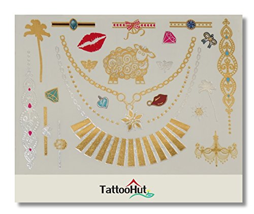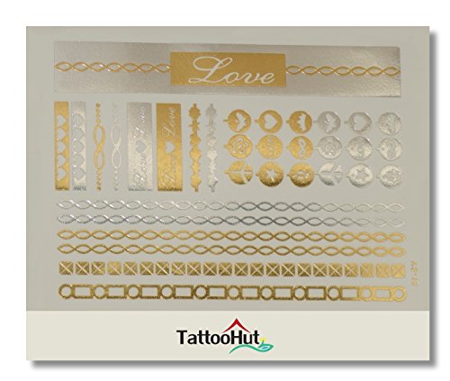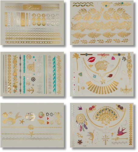 ZOOM IN! Take a look at these GLIMMERING colorful METALIC RAINBOW Gold & Silver flash temporary tattoo designs. Premium Quality.