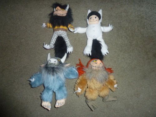-. Binding : Toy -. EAN : 0634829554071 -. Feature : WILD THINGS ARE -. IsAdultProduct : 0 -. Label : Crocodile Creek -. Manufacturer : Crocodile Creek -. ProductGroup : Toy -. ProductTypeName : TOYS_AND_GAMES -. Publisher : Crocodile Creek -. Size : 4 inches -. Studio : Crocodile Creek -. Title : Lot of 4 "Where the Wild Things Are Plush Dolls (Max, Moishe, Sipi, Bernard) -. UPC : 634829554071