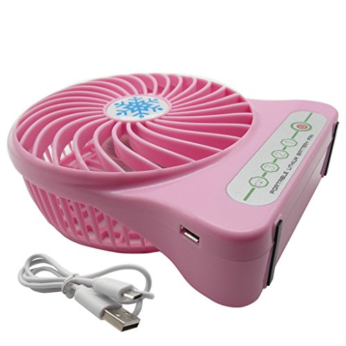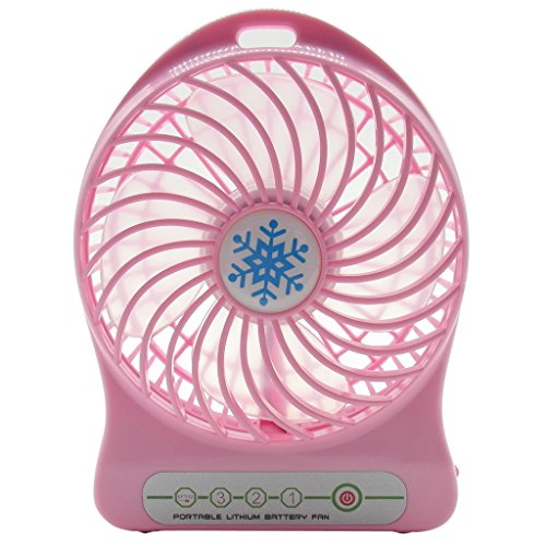 TrendBox Mini Portable USB Rechargeable Fan 3-Level Speed Adjustable Electric Cooling Laptop Computer with LED Light - Pink