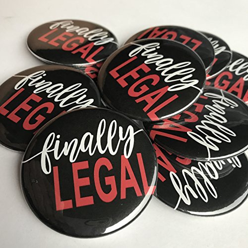 Finally Legal Buttons, 21st Birthday Party, 21st Birthday Party Favor, Set of 10, 18th Birthday Party Favor, Finally Legal, Legalization, Legalized