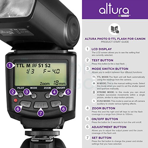 Features:Backed with Digital Goja 90-Day 100% Satisfaction Guarantee. Includes 1-Year Altura Photo Limited Warranty.Altura Photo AP-C1001 Professional E-TTL Flash - Powerful flash performance with a guide no. of 68(m).