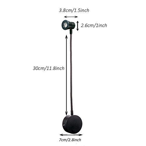 - Flexible goose-neck: 30cm / 12inch, 360 degrees adjustable lighting direction, be capable of swiveling and rotating for desired lighting angle--- Turn up for a nice ambient light, turn downwards for reading without bothering others