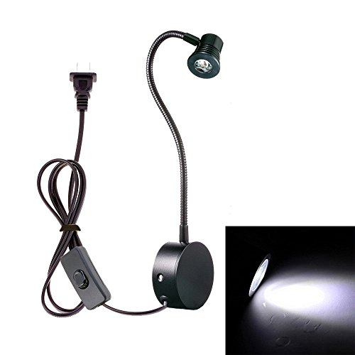 Onerbuy LED Task Lights Flexible Arm Reading Desk Lamp Wall Mount Sconce Light with Plug and On/off Switch for Office, Bedside, Study (Black-Cool White)