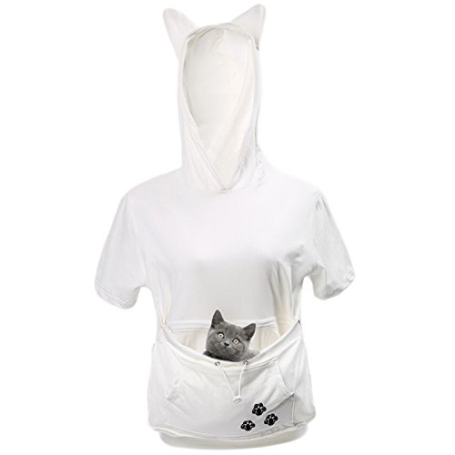 -. Title : Women Kangaroo Pouch Carriers Pullover Large Pocket Hoodies Pet Holder Short Sleeve Sweatshirt