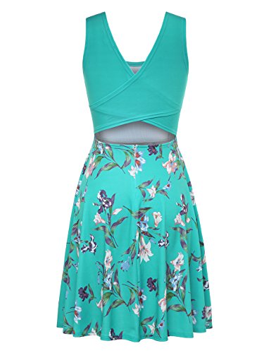 FSOOG Women Summer Beach Casual Flared Floral Tank Dress