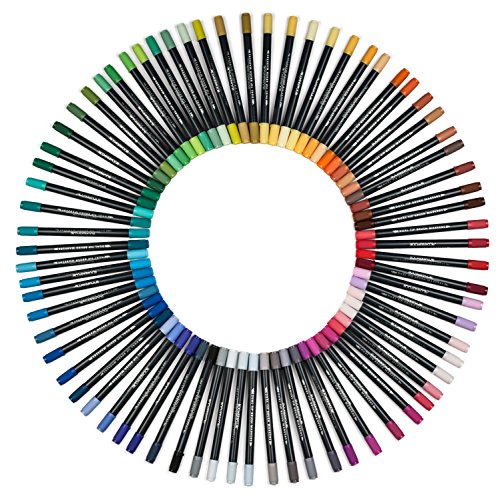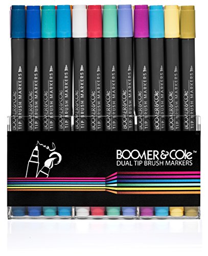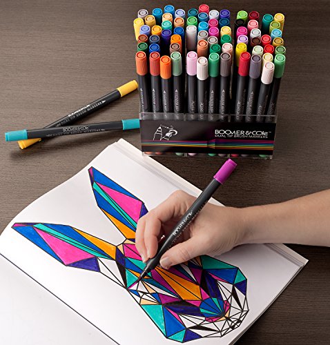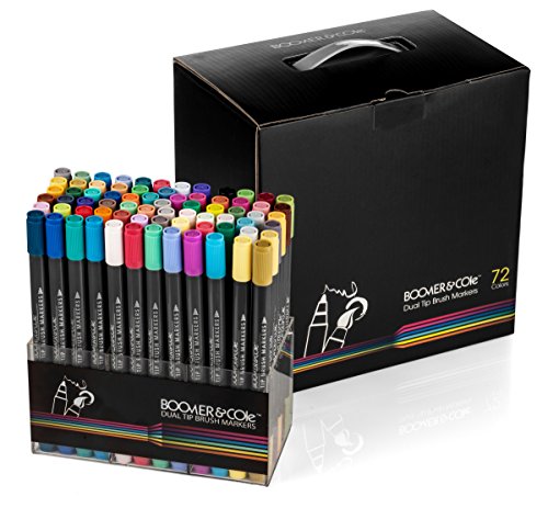 Boomer & Cole Dual-Tip Brush Markers | Non-Toxic, Water-Based Ink | Set of 72 w/ Desk Stand
