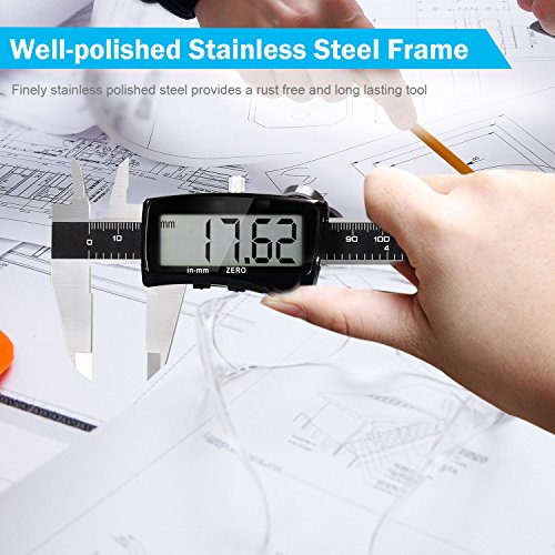 Dr.meter Digital Caliper 6" Stainless Steel Venire Caliper Gauge Micrometer with Electronic Large LCD Display Inch Decimal Millimeter Auto off Measuring tool,Black,Dr-150