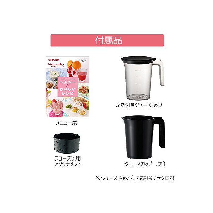 부속품:쥬스 컵(검정)고, 쥬스 컵(투명)고, 쥬스 컵 뚜껑 /냉동용 어태치먼트/쥬스 캡(노란색)/ 청소용 브러시 / 취급 설명서 /메뉴집