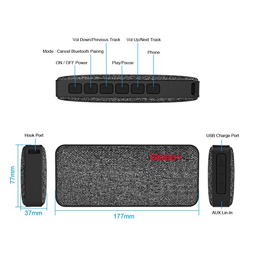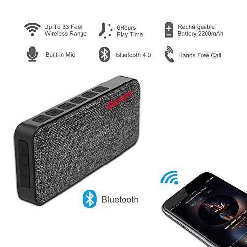 GGSDY Portable Bluetooth Speaker IPX7 Waterproof with Fabric Design,10W Wireless Speakers,Stereo Surround Sound with Enhanced Bass,Build-in Mic for Apple iPhone 7/7 Plus,iPad and Android Phones(Grey)