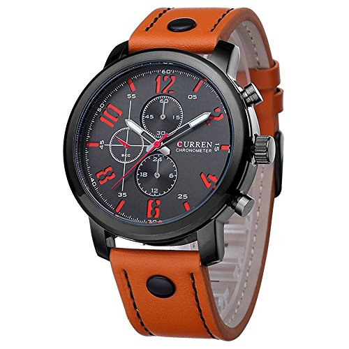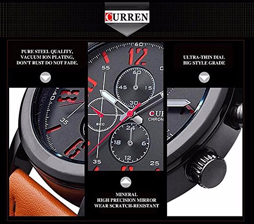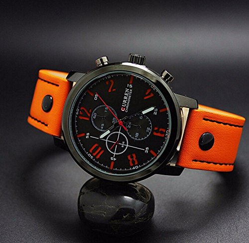 -. Title : CURREN Original Men's Sports Waterproof Leather Strap Date Wrist Watch Good Quality 8192 Orange Black