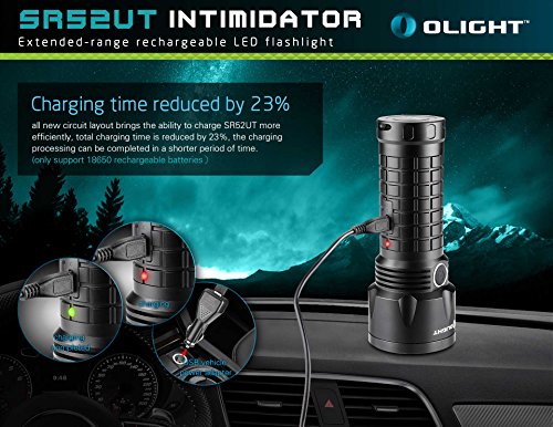 Olight 1200 Lumens SR52UT Kit Intimidator Cree XP-L HI LED Extended-range Rechargeable Flashlight with 3x 18650 Batteries Micro-USB Cable Holster USB Vehicle Power Adapter Spare O-ring
