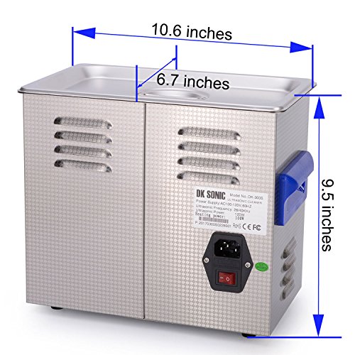 DKSONIC 3L 120W Benchtop Best Ultrasonic Jewelry Cleaner With Heater Semiwave and Fullwave Modes for Coins Watches Glasses Circuit Boards Printheads Guns Tools Parts Denture Injector 40KHz