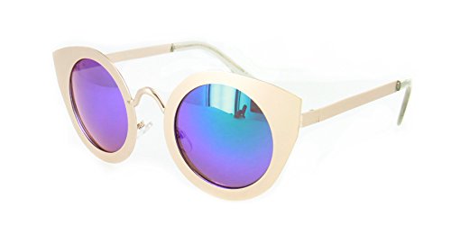 "Milo" Women's Designer Retro Round Cateye Sunglasses with Mirror Lens