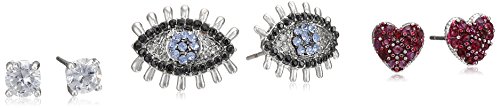 BETSEY JOHNSON "VALENTINE'S DAY" PAVE CUBIC ZIRCONIA EYE AND HEART STUD EARRINGS