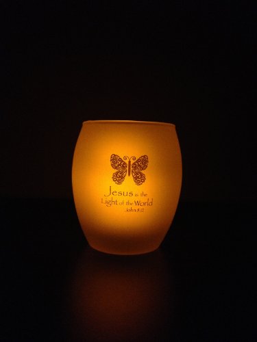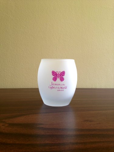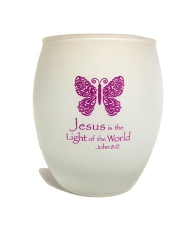 Jesus is the Light of the World Inspirational Glass Tea Light/Votive Candle Holder (Purple)