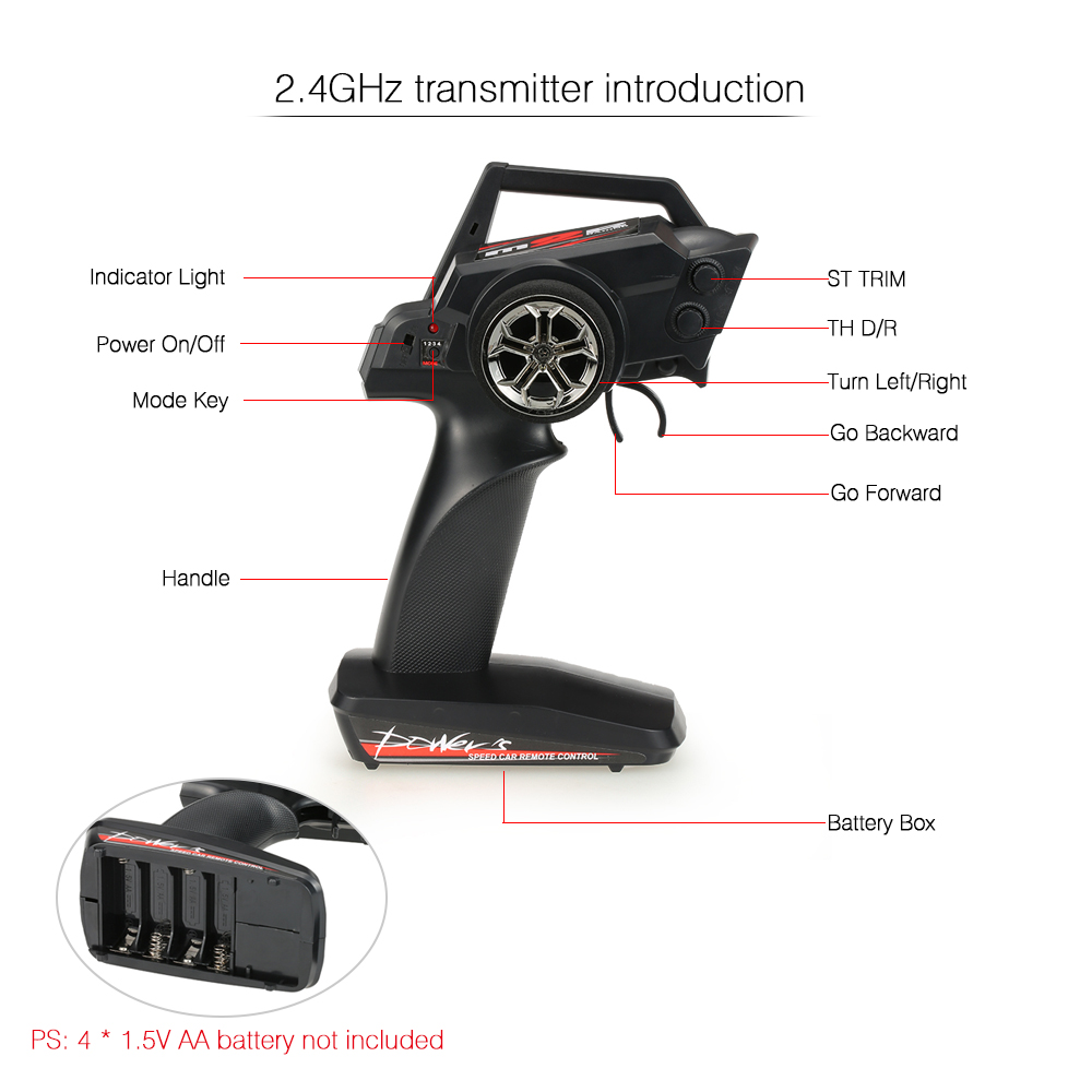 Transmitter battery: 4 * 1.5V AA battery (not included)