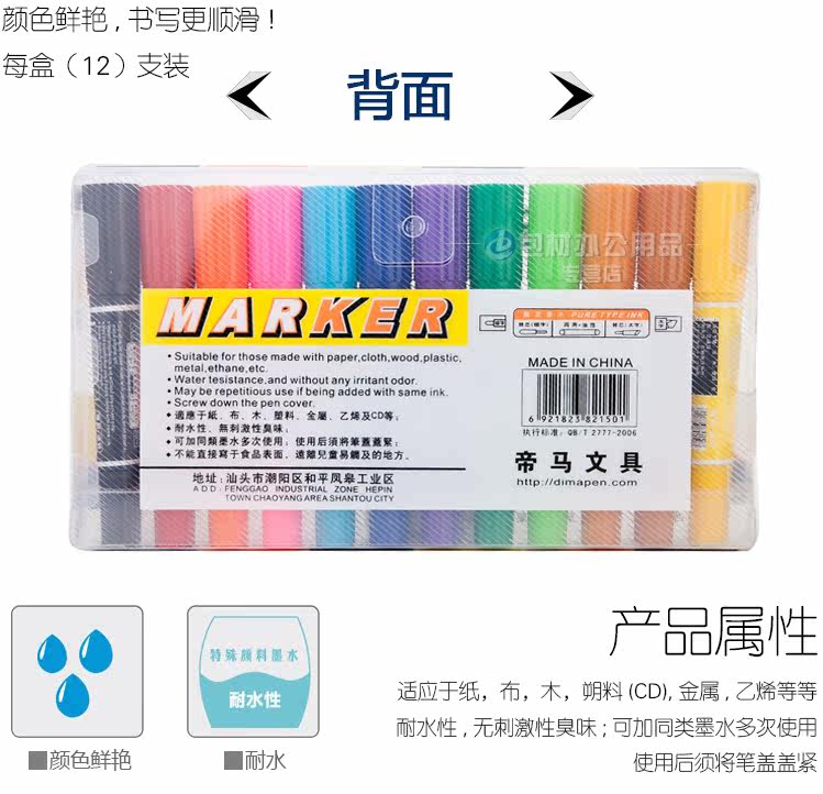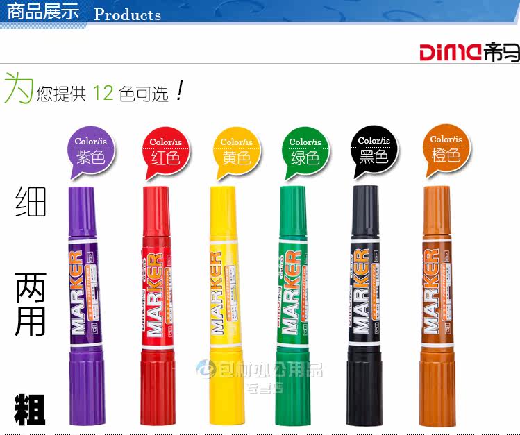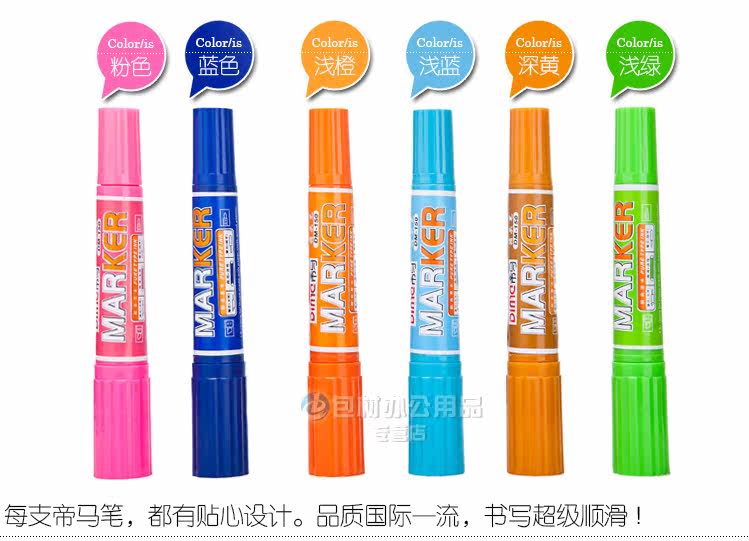 DM-150 箱头笔12色 50*29.8*52.8CM   12支/盒  黑、红、粉红、橙、黄、绿、浅绿、紫、蓝、浅蓝、土黄、棕   1.2