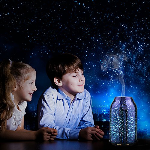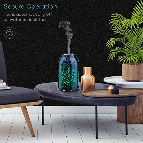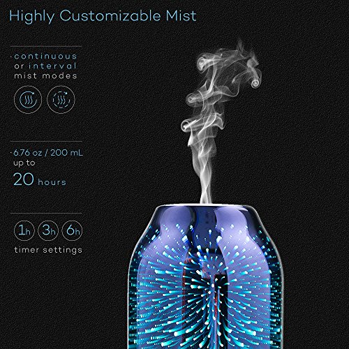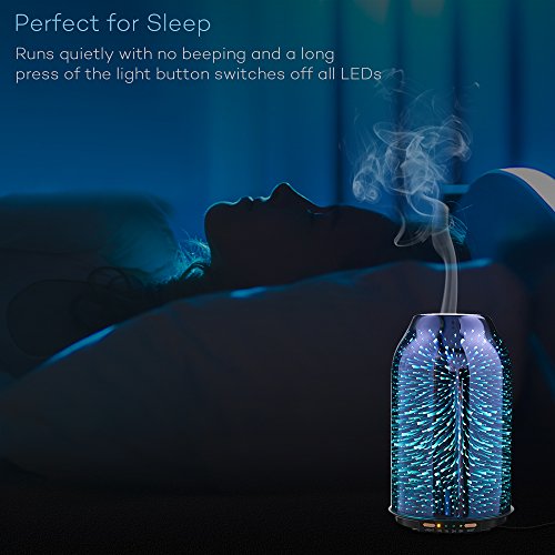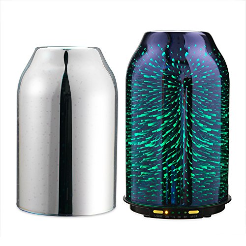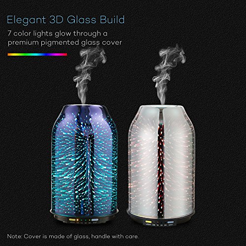 Diffuser, TaoTronics Essential Oil Diffuser with Elegant 3D Glass Build, Compact 6.76 oz / 200 mL Aroma Diffuser, Humidifier for Kids, Comes with 2 Glass Covers, Extra Silver Shade for Free
