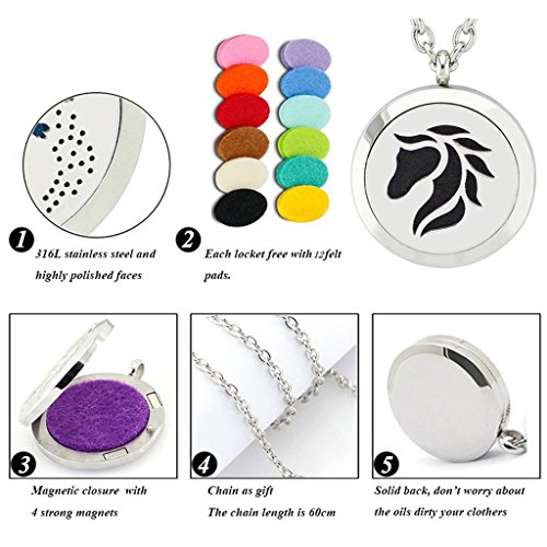 Aromatherapy Essential Oil Diffuser Necklace-Stainless Steel Locket Pendant with 12 Refill Pads