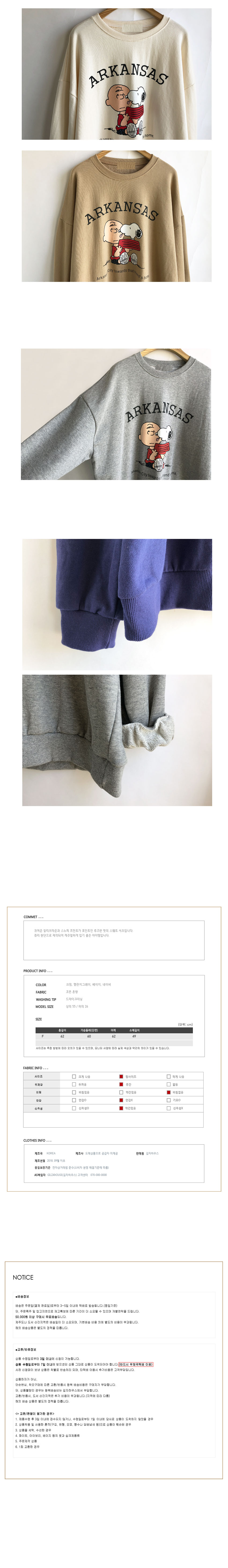 Free(단면): 가슴둘레 60cm, 어깨 62cm, 소매 49cm, 총장 62cm