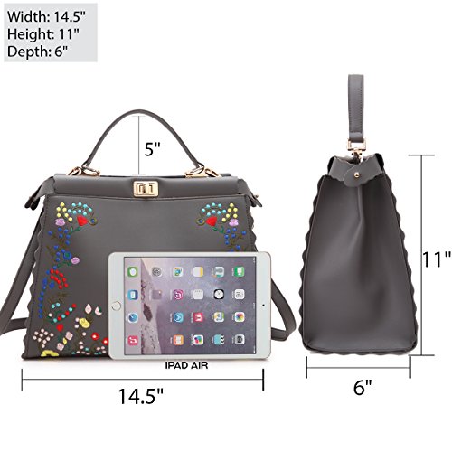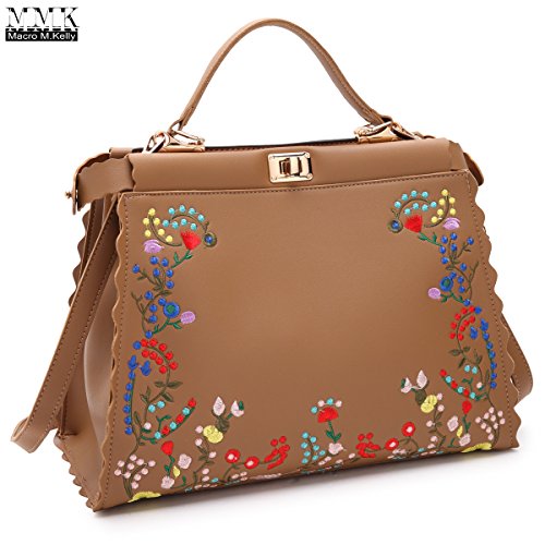 -. Title : MMK Collection 2018 Fall&Winter Embroidered Flower Design Style for Women~Design Double twist lock closure Satchel Handbag